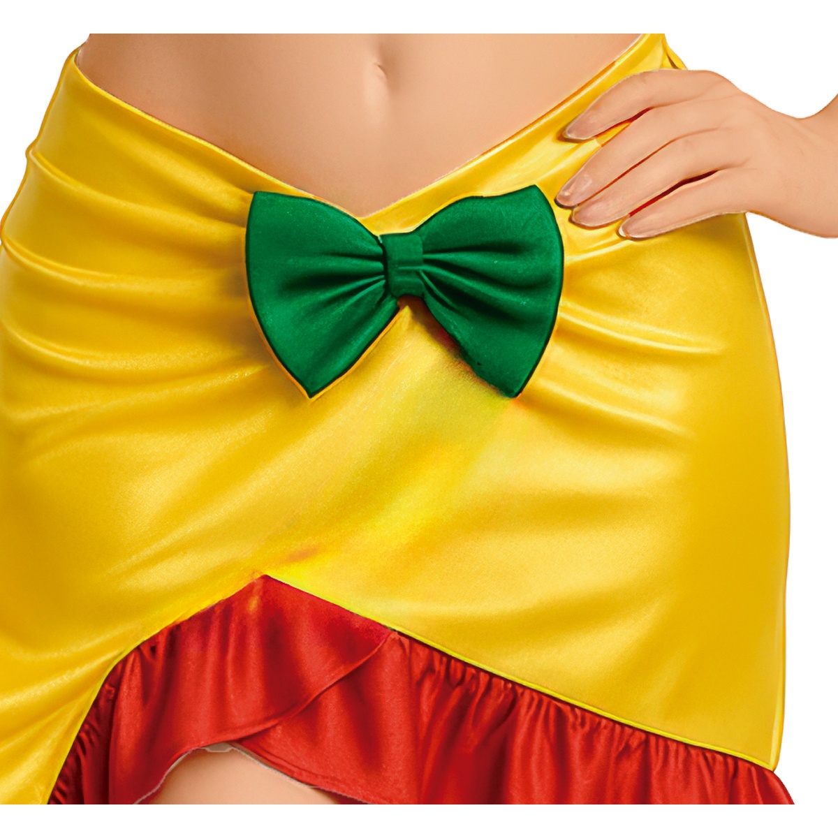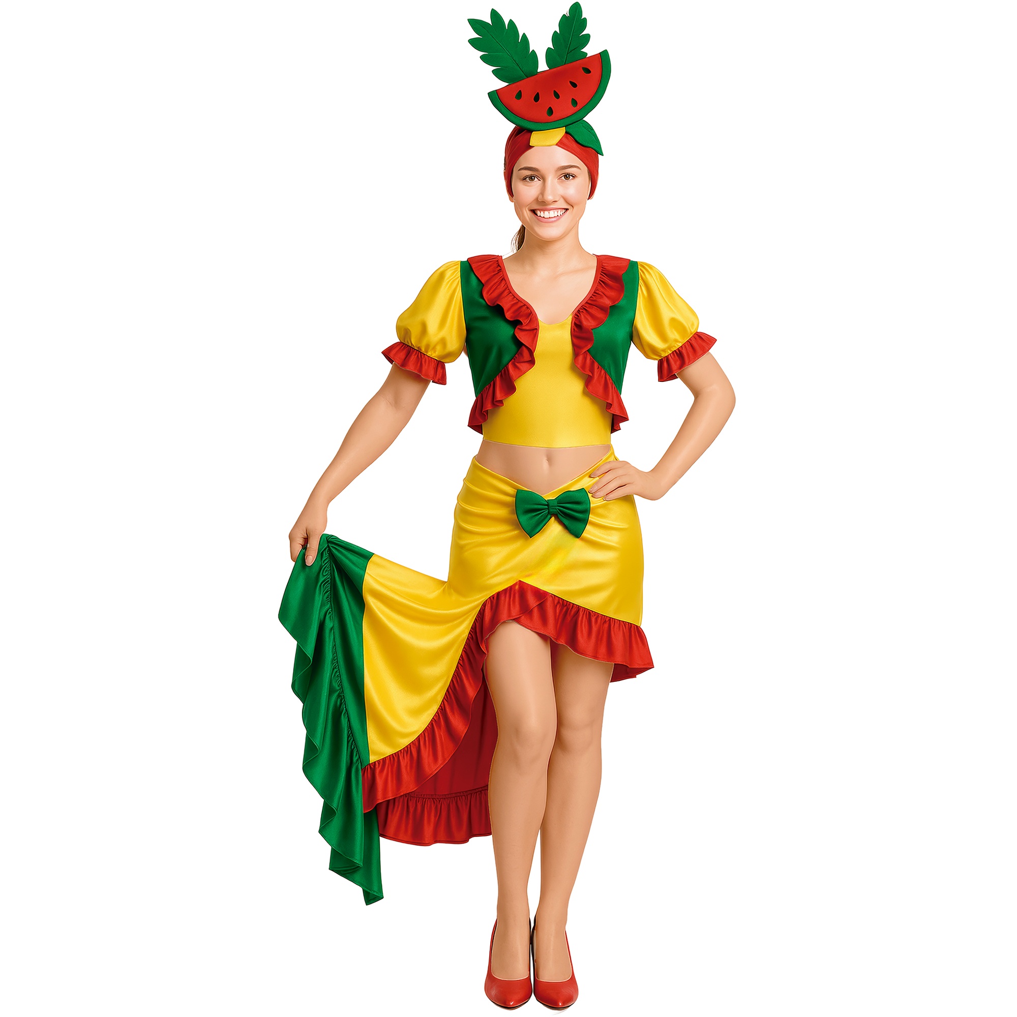 Fantasia de cubana de corte alegre e colorido, pensada para se destacar em desfiles e celebrações.
