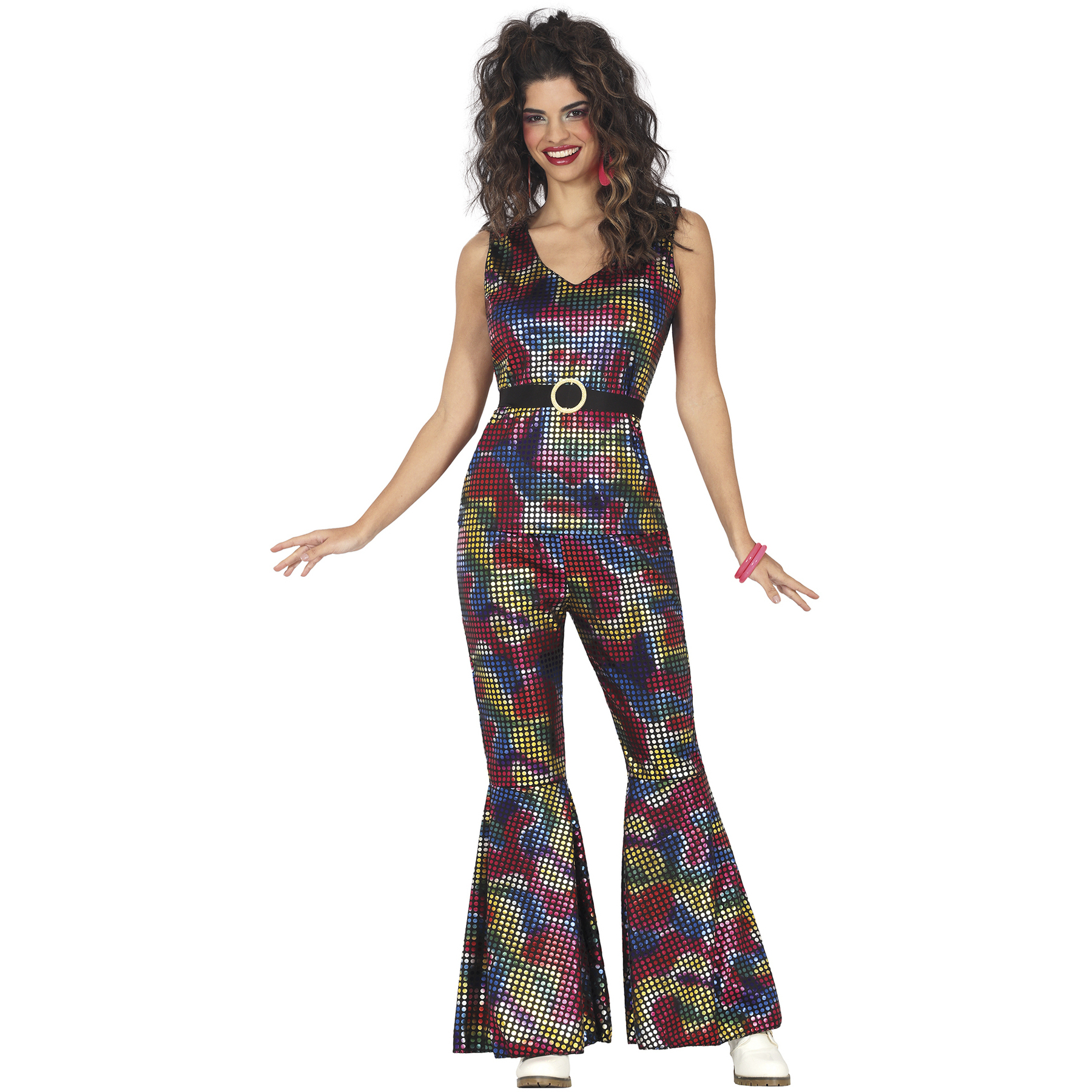 Fantasia de estilo disco com cores brilhantes para mulher