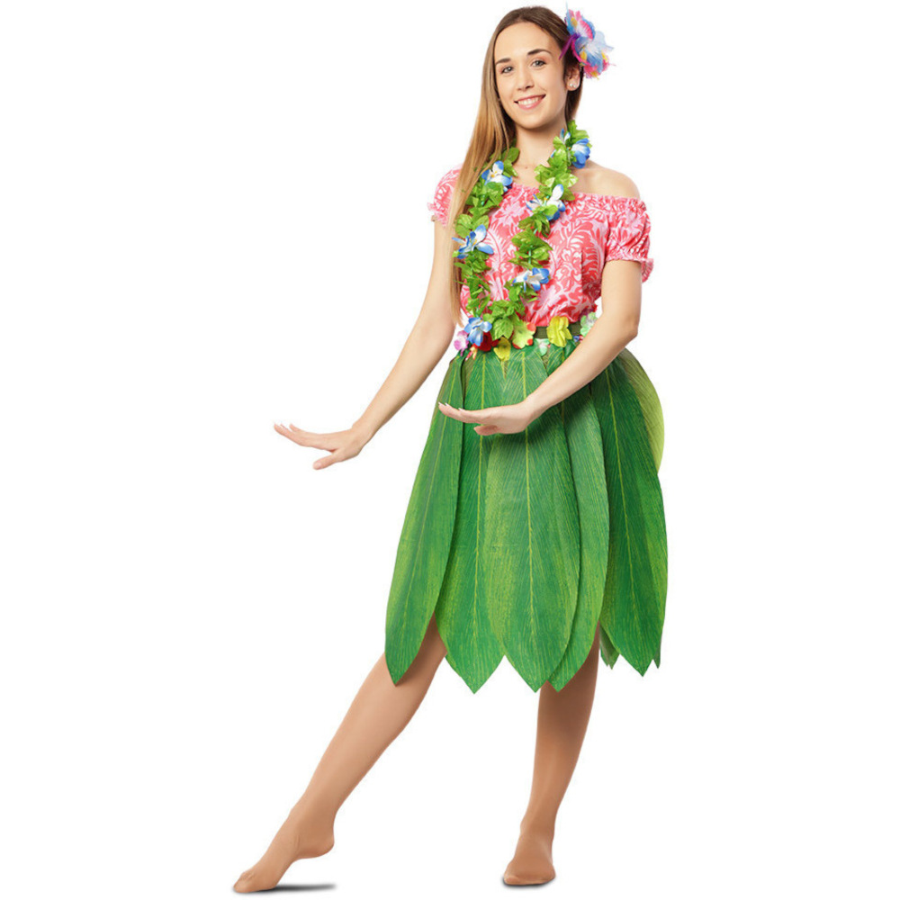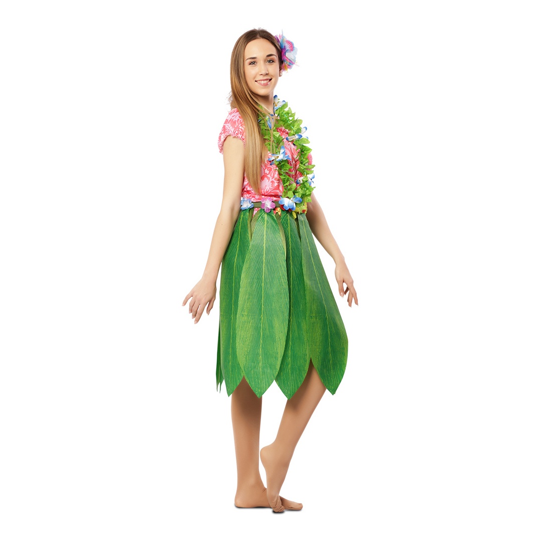 Fantasia de havaiana com folhas para mulher