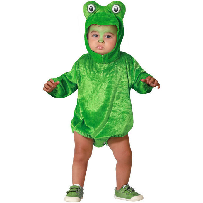 Um modelo divertido de sapinho para bebê com abertura na parte inferior para trocar a fralda confortavelmente.