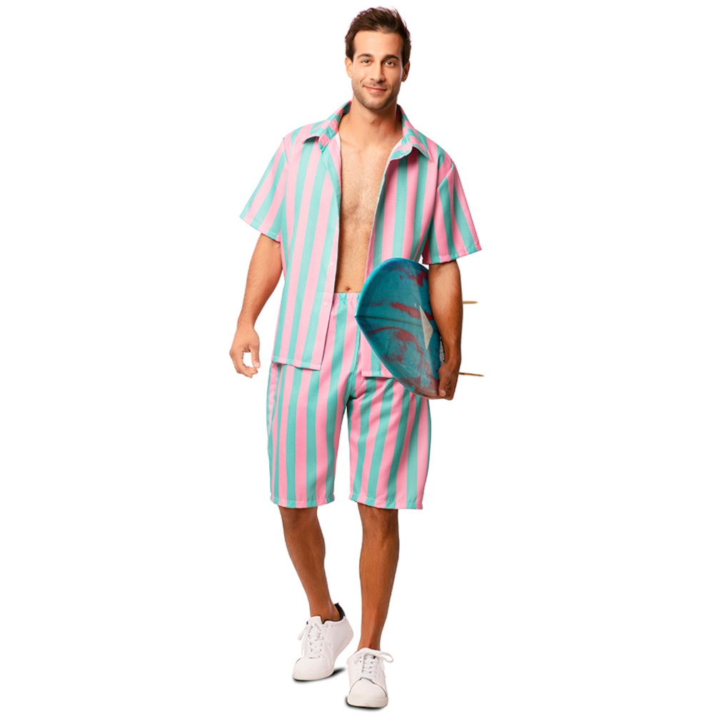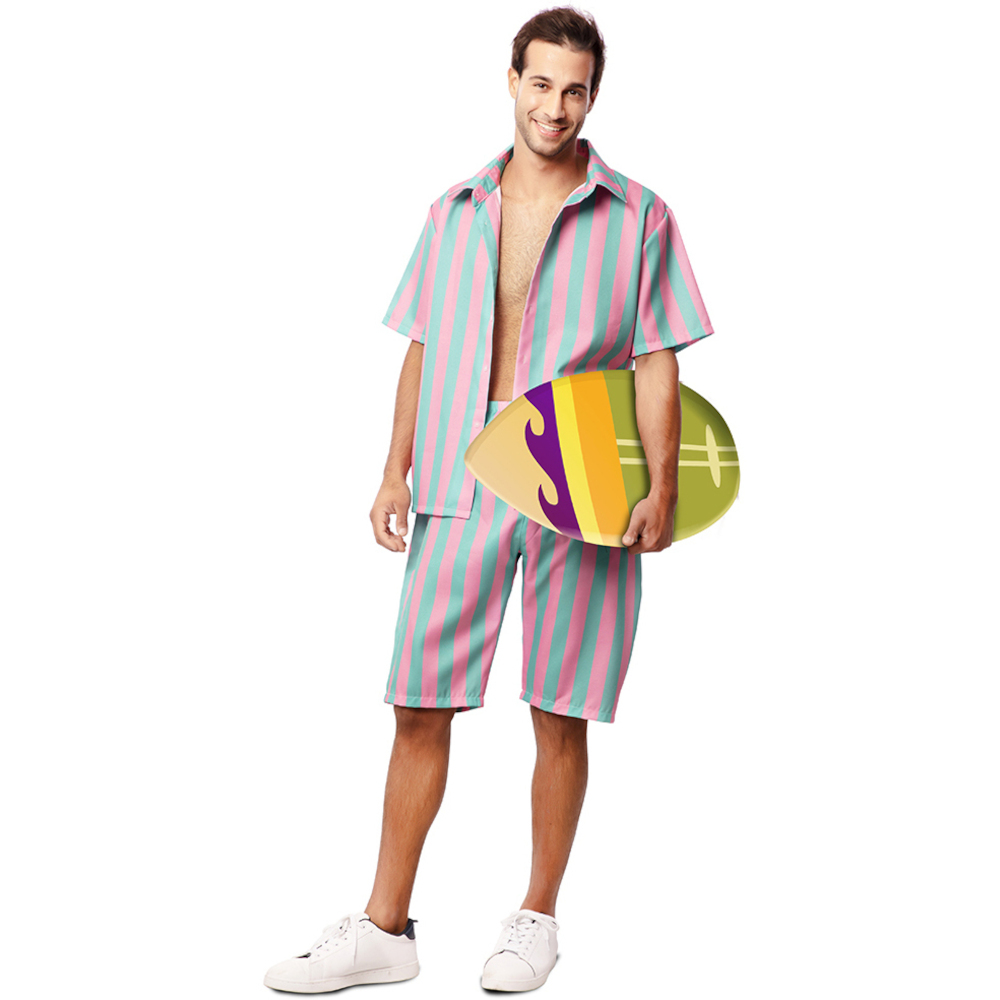 Uma divertida fantasia de surfista masculina, muito colorida para que o senhor não passe despercebido.
