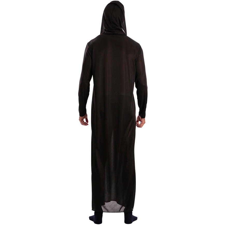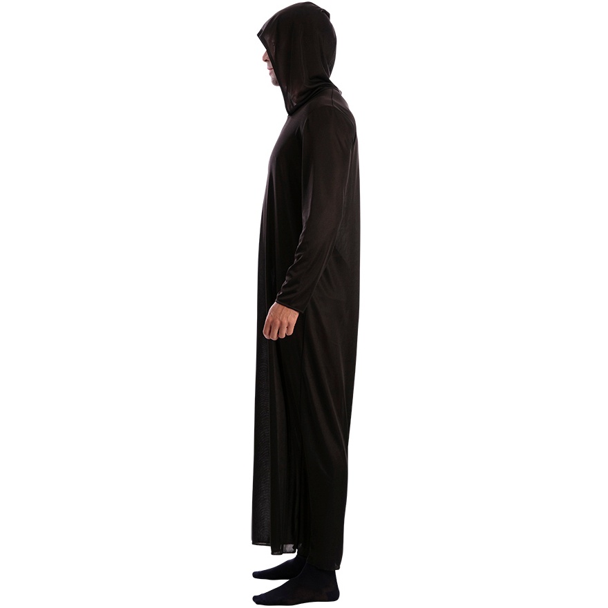 Fantasia de túnica preta com capuz para adulto