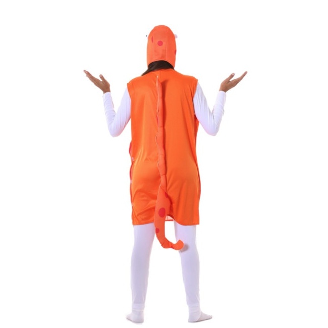 Un disfraz muy original y muy comodo, quizas le falte un poco de relleno en la zona final de la cola, pero el resto genial. Muy recomendable y una rapidez en el envío que se agradece.