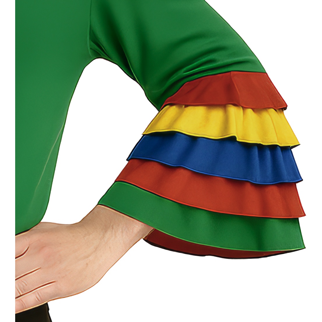 - Design autêntico com mangas de folhos multicoloridos que realçam o movimento ao dançar.