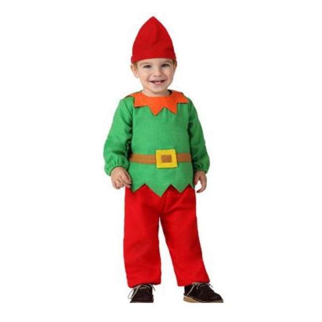 É constituída por uma t-shirt verde de mangas compridas que inclui também um cinto e tem a vantagem de ter velcro atrás, para ser mais fácil de vestir. Tem um design muito giro com um acabamento em picos. As calças vermelhas têm um elástico na cintura e, na mesma cor, vêm acompanhadas de um divertido chapeuzinho com a típica forma de cone.