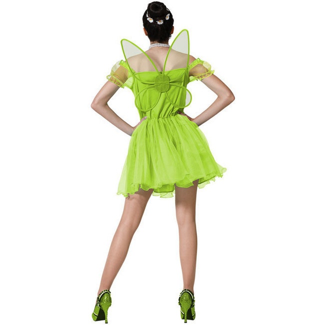 Uma bela fantasia de fada verde para os adultos vestirem-se para o carnaval.