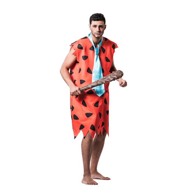 Túnica simples sem mangas cor de laranja com manchas pretas que imitam a pele de um tigre e combina lindamente com uma gravata azul fixe. O design com espigões dá o estilo primitivo da personagem.