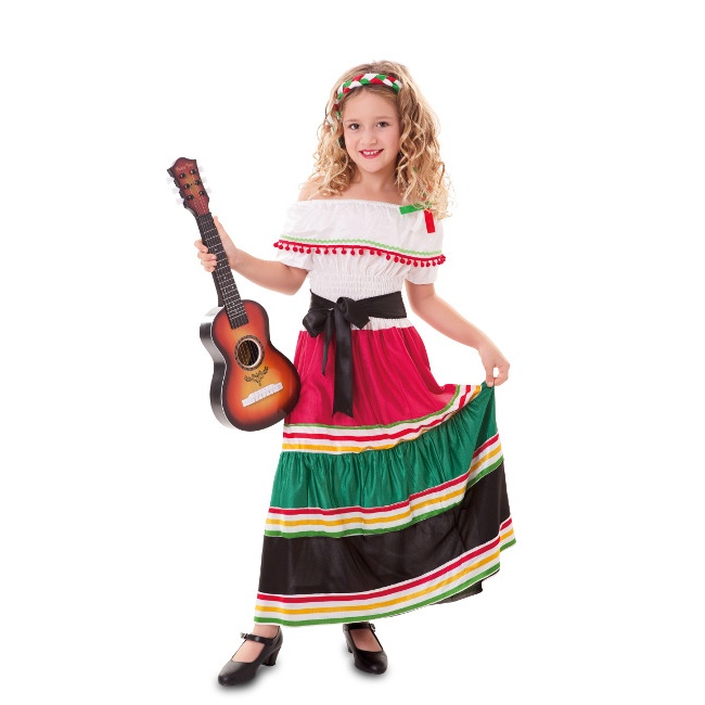 Traje tradicional com o desenho da bandeira mexicana em forma de vestido para raparigas.