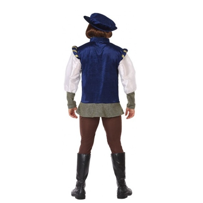 Esta fantasia é composta por um gorro azul de época, uma camiseta azul-celeste com jaqueta cosida azul com detalhes dourados nos ombros e cordões a modo de botões. Completa-se com uma calça marrom com cintura elástica.