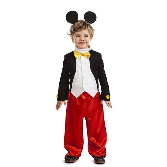 É composto por um fraque preto com o efeito da camisa branca e do laço formando uma única peça, este é atado com botões à frente para ser confortável de vestir. Usa também as calças vermelhas da marca registada e uma bandolete com as orelhas redondas do ratinho.