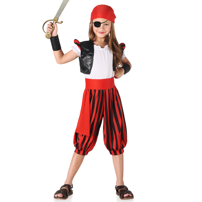 Fato de pirata com calças às riscas para rapariga