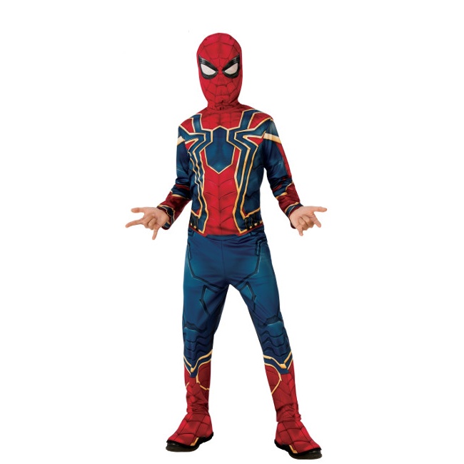 A fantasia é composta por um macacão de tecido estampado, impresso na frente e nas costas do traje do super-herói aracnídeo com uma capa de bota presa ao macacão. É fornecido com a máscara de tecido, também totalmente estampada.