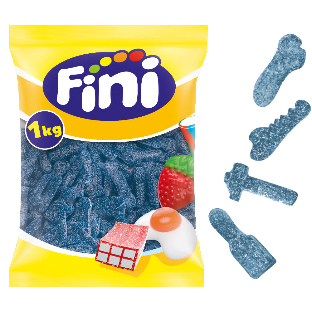 Ingredientes: Açúcar, xarope de glicose, gelatina, água, corretor de acidez (E350), acidulantes (E296), aromas, corante: E133.