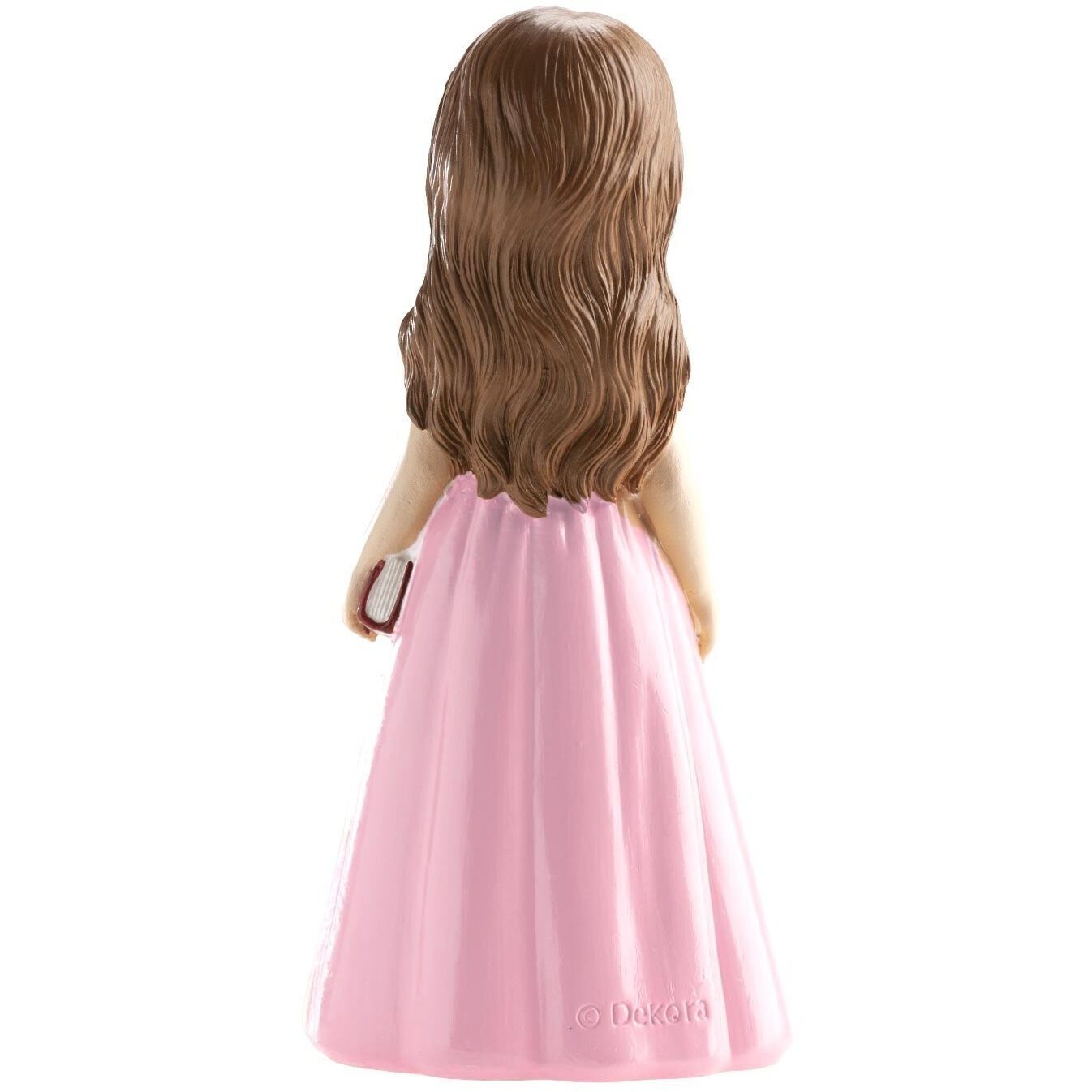 Figura para bolo de Minha Primeira Comunhão menina com saia rosa de 16 cm
