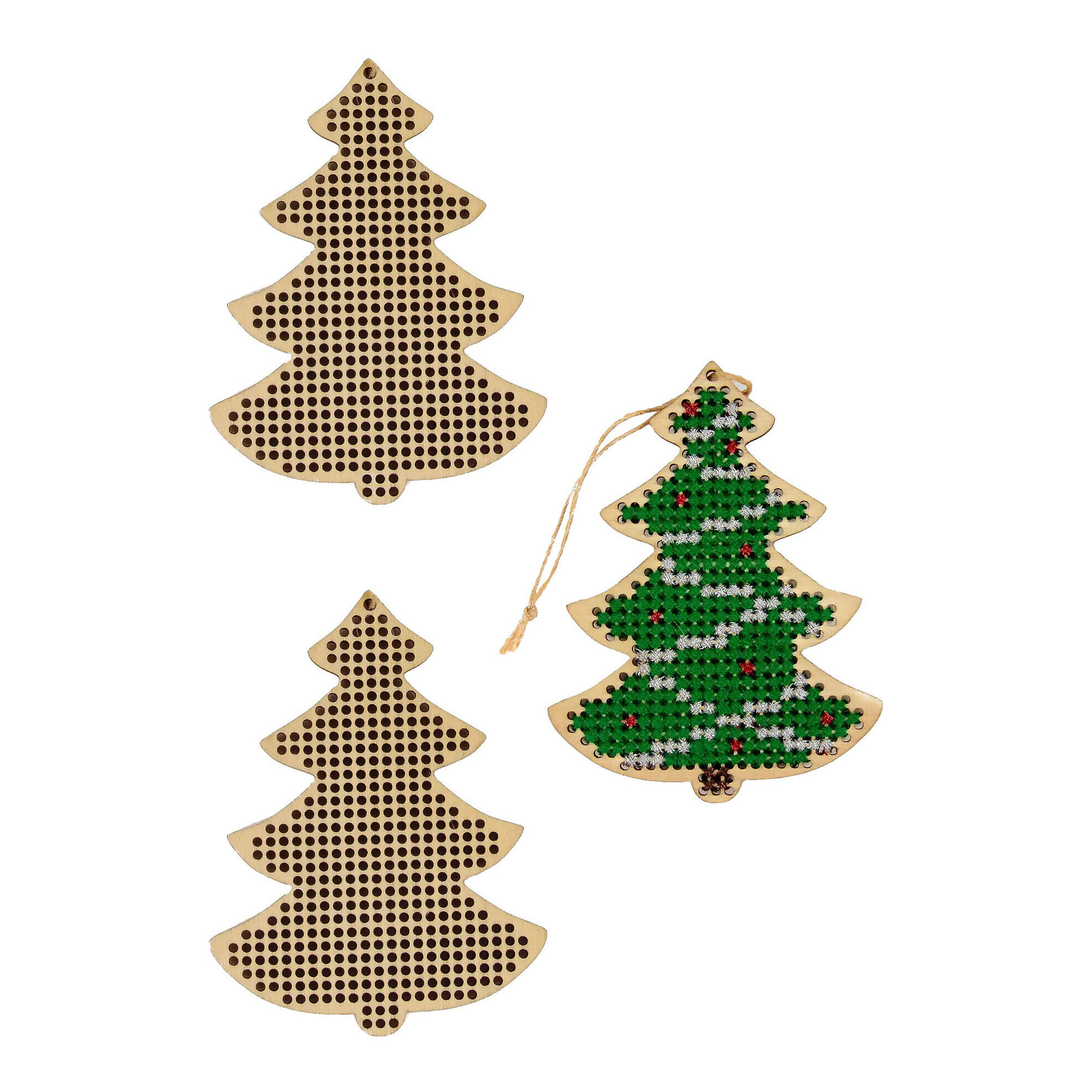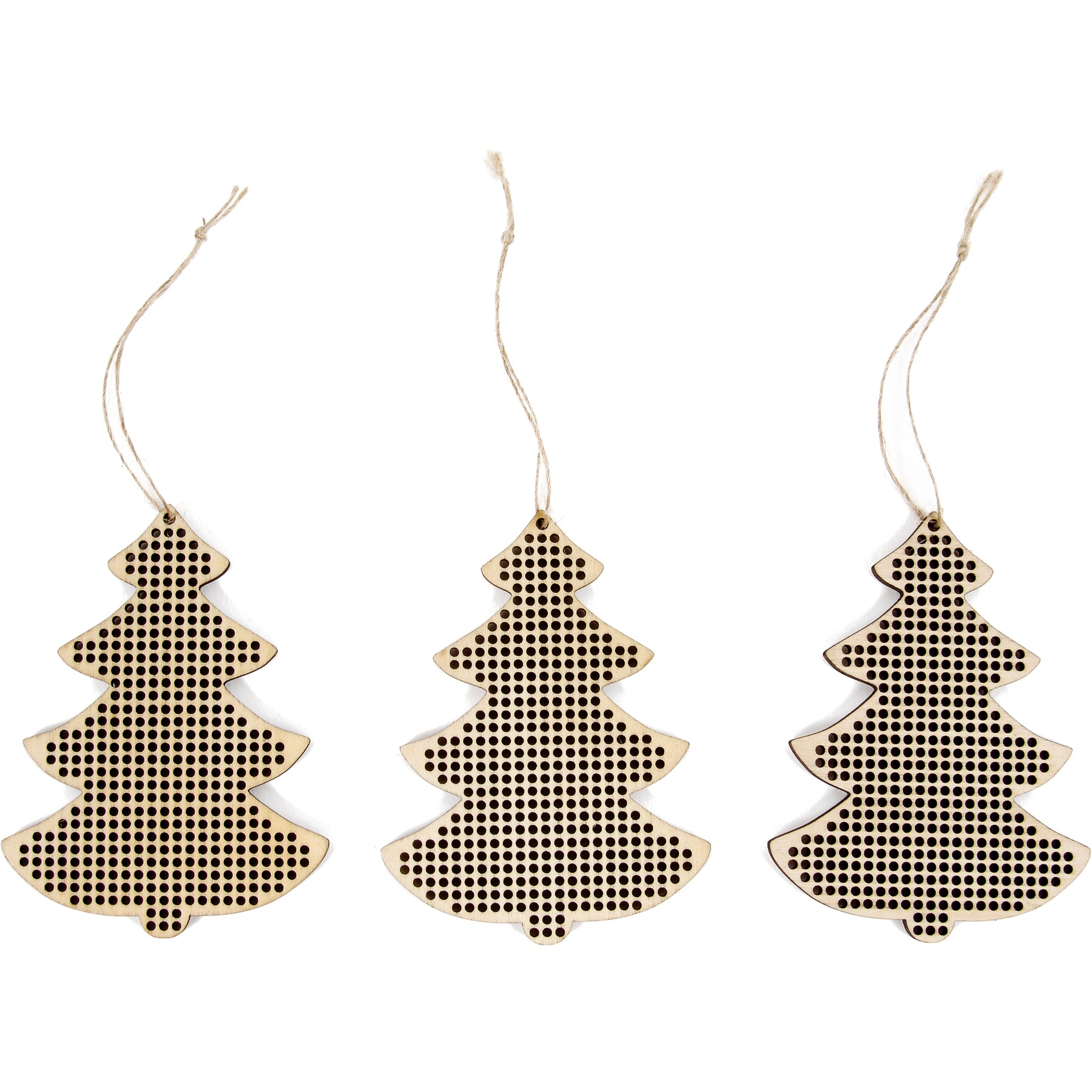 - Inclui 3 ornamentos de MDF perfurada e 3 cordões de juta para pendurar.