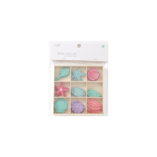 Estatuetas do mundo marinho em madeira - 27 unidades