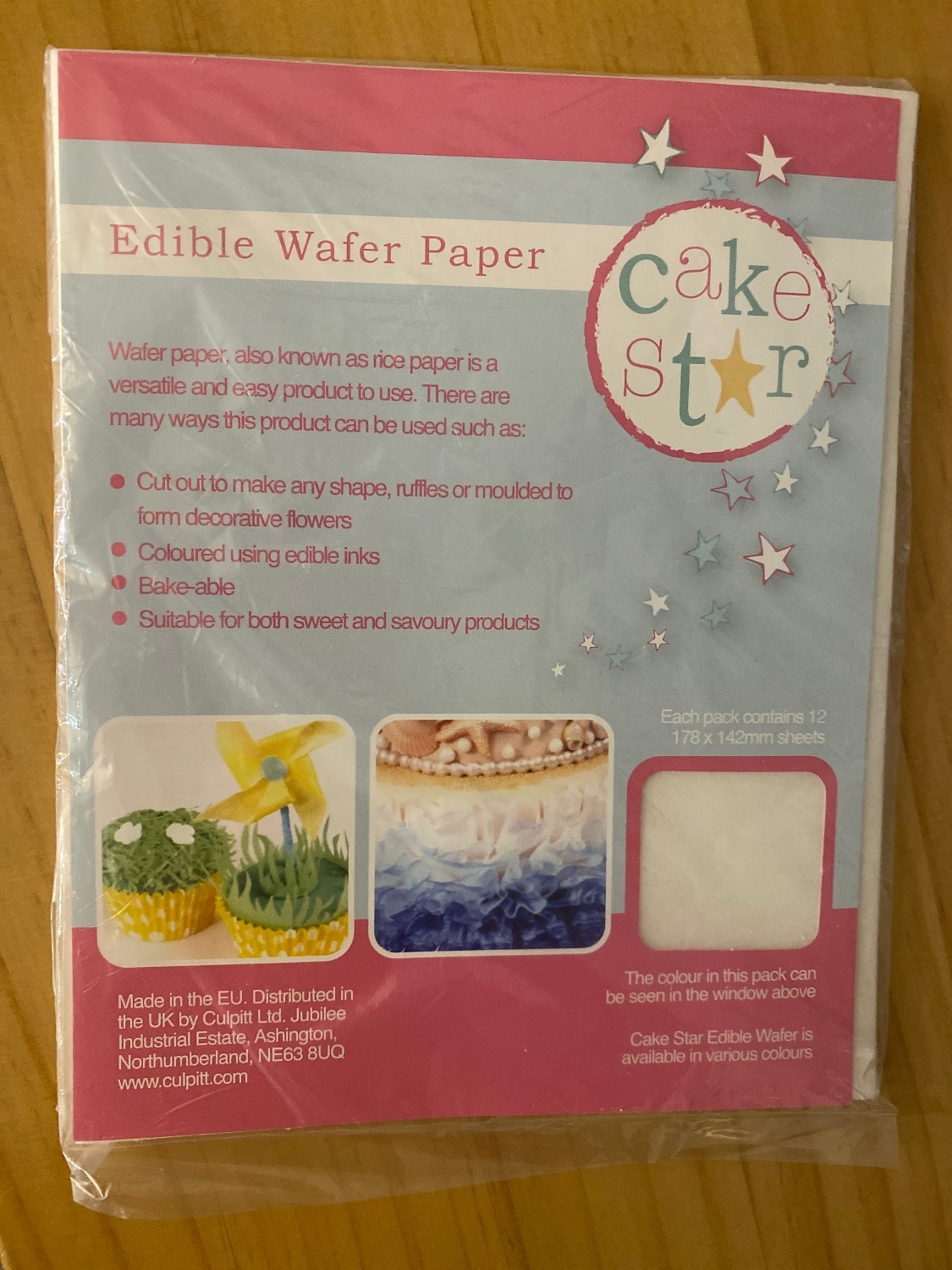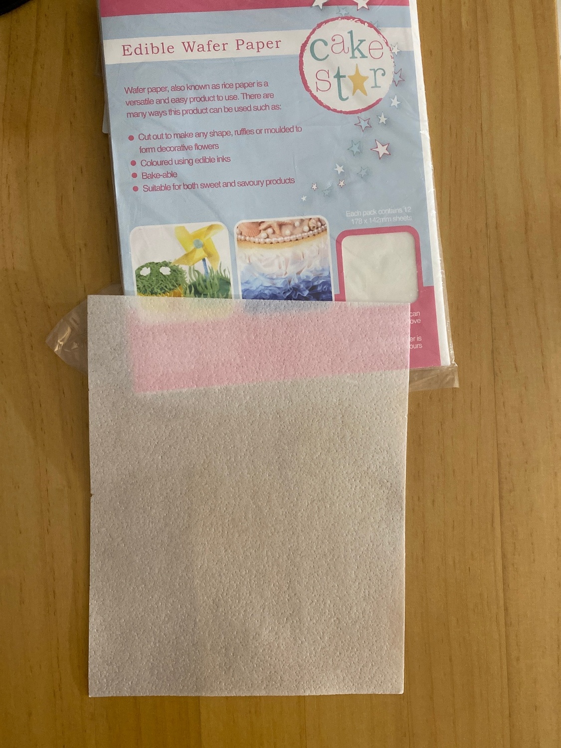 - Papel de arroz branco comestível da Cake Star, ideal para decorações e flores.... e até para cobrir as nossas formas de bolo prontas a cozer!