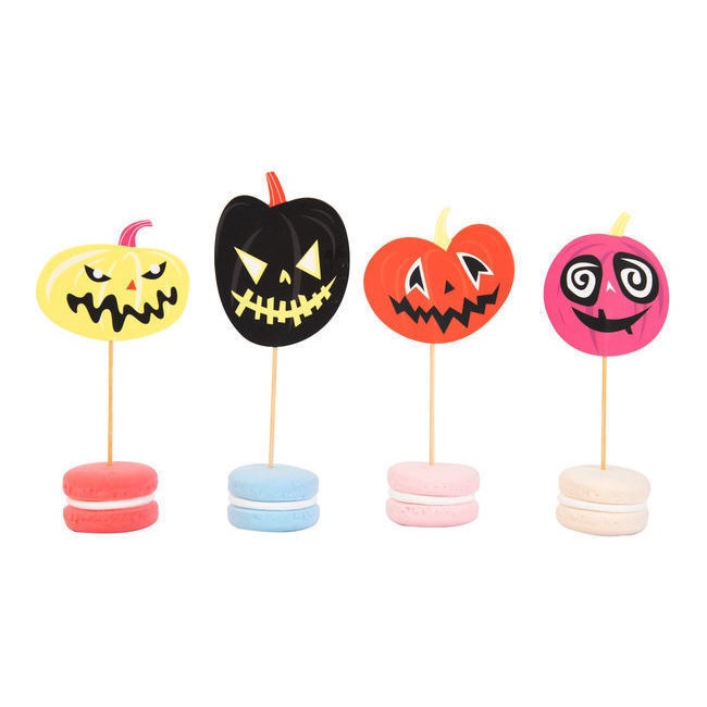 Um pacote de cápsulas para cupcakes e picaretas aterradoras, perfeitas para decorar as suas sobremesas nas suas festas de Halloween.