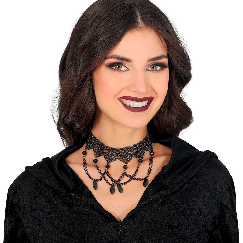 Gargantilha bordada com pedraria preta