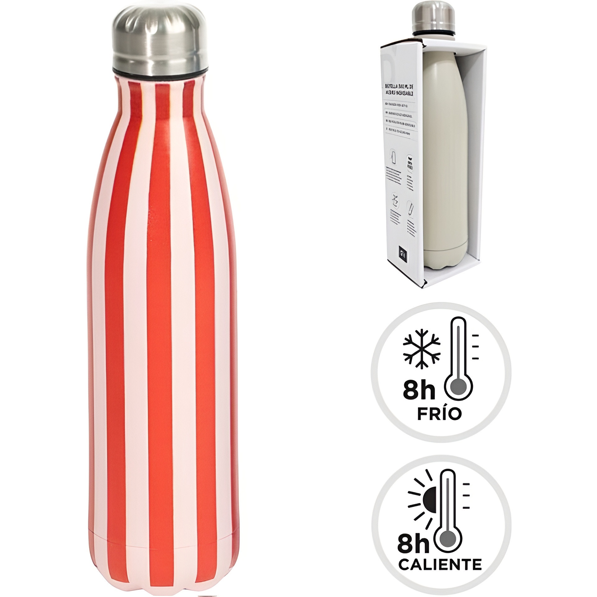 Garrafa térmica de 0,5 L listrada vermelha e branca