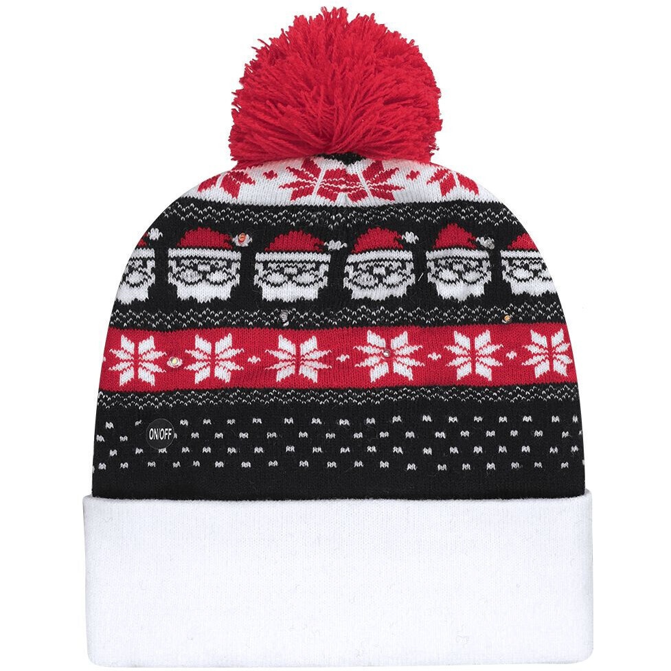 - Gorro natalino com luz LED e design com pompom.