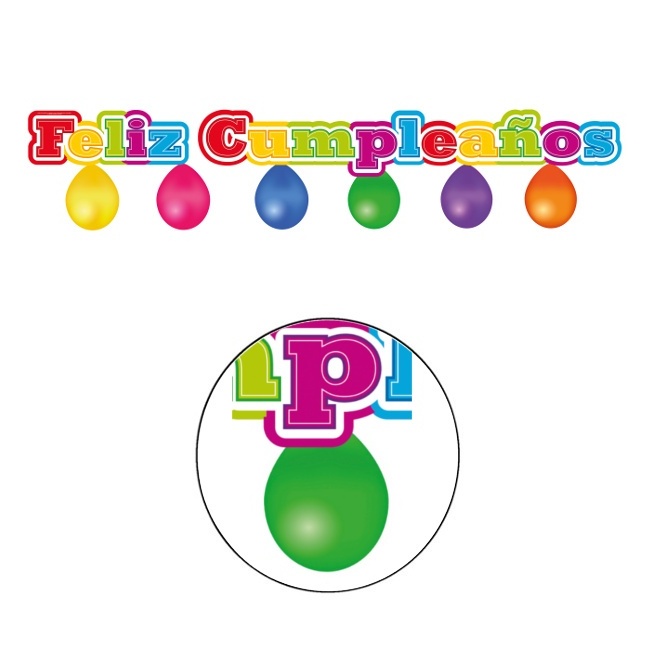 Faixa decorativa típica com as palavras "feliz aniversário" em cartão.