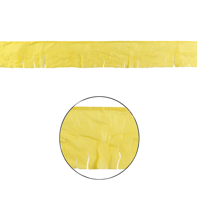 Recipiente que contém uma grinalda de franjas de papel de corte ondulado com a qual pode decorar grandes espaços graças ao seu comprimento.
