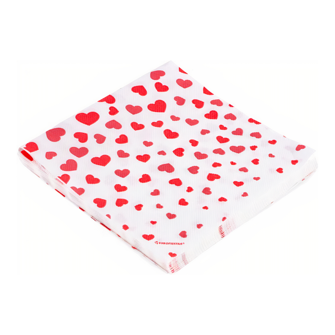 Guardanapos com corações vermelhos 16,5 x 16,5 cm - 12 unidades