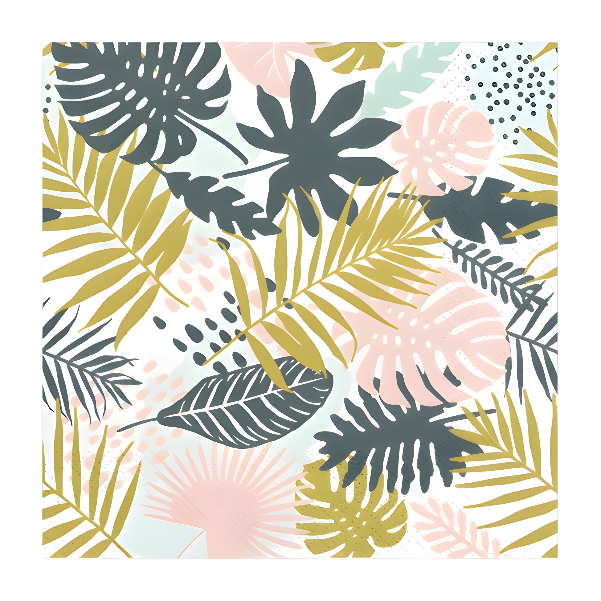 Conjunto exótico de guardanapos com um design inspirado em folhas tropicais para embelezar as suas festas temáticas e aniversários.