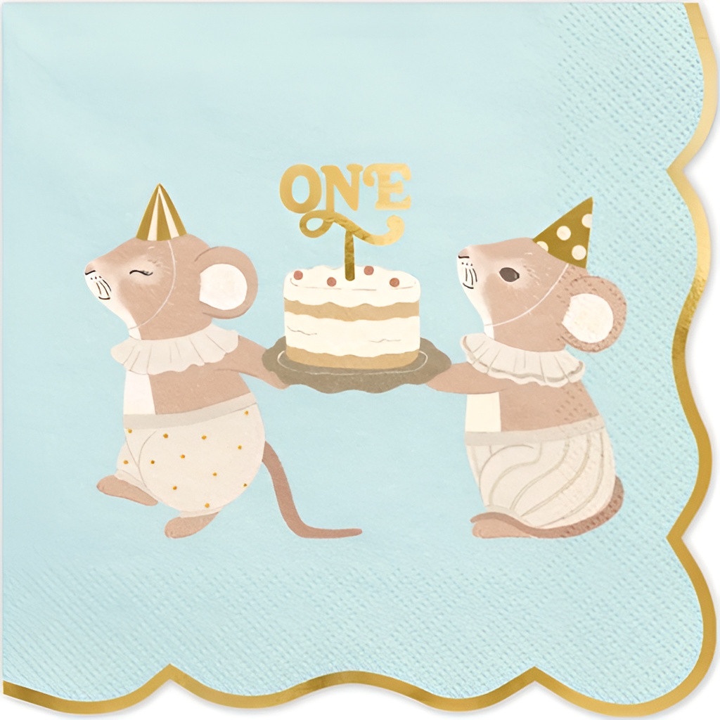Guardanapos ONE com ratinhos 16,5 x 16,5 cm - 12 unidades