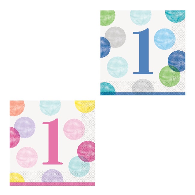 Guardanapos para o primeiro aniversário 16,5 x 16,5 cm - 16 unid.