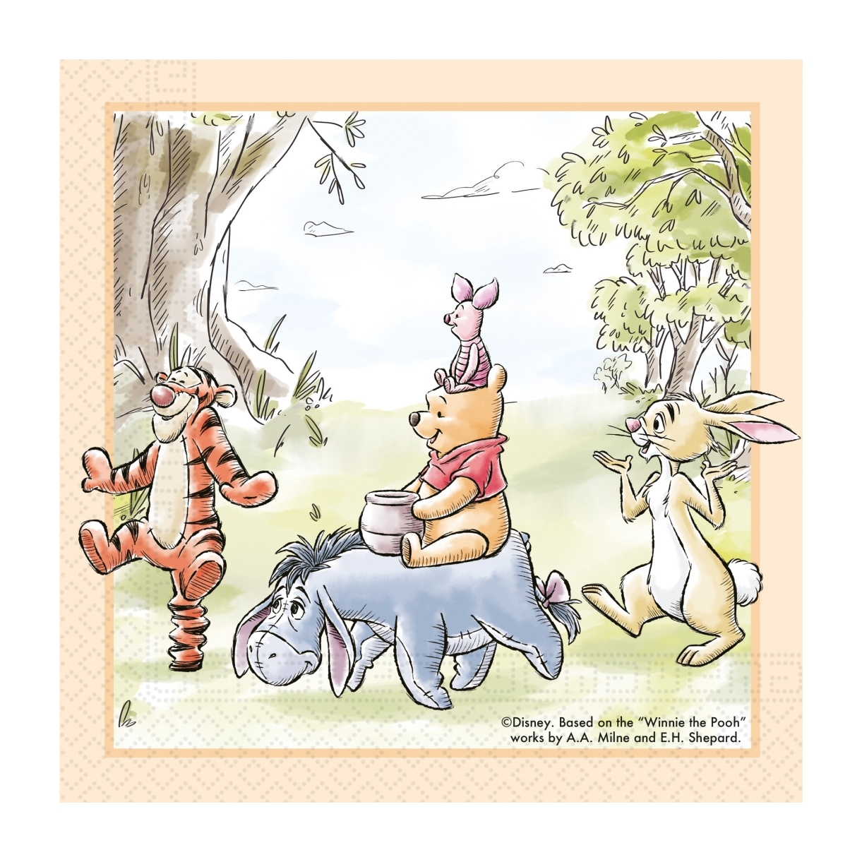 Guardanapos Winnie the Pooh motivo natureza 16,5 x 16,5 cm - 20 unidades