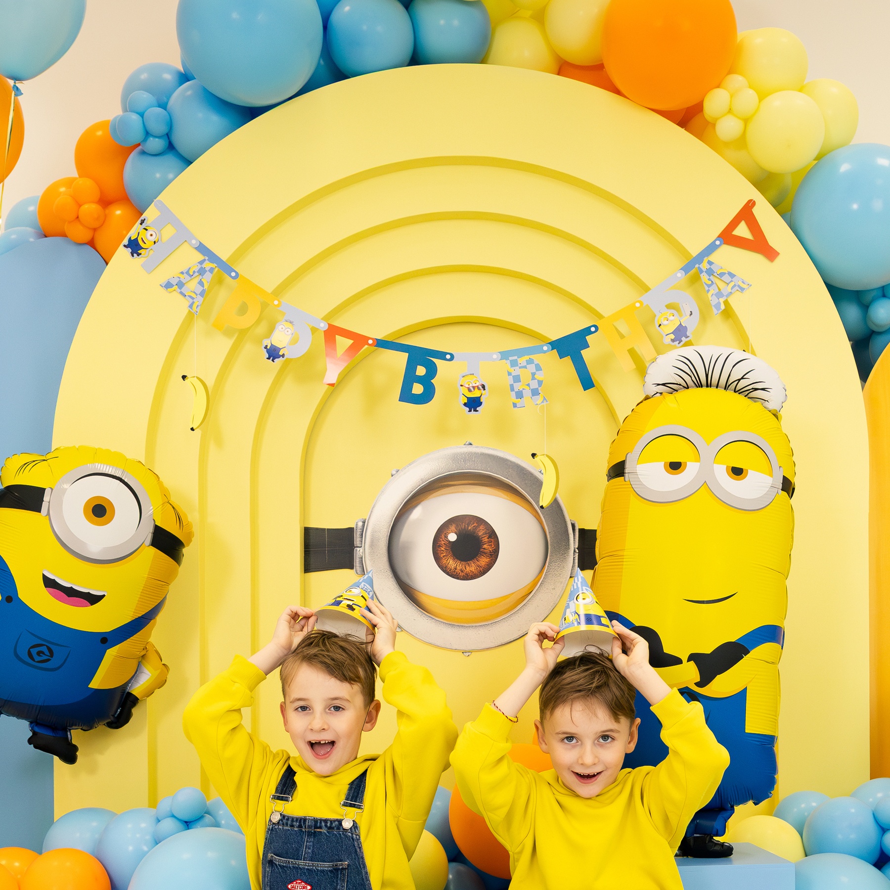 - Design atraente com Minions e bananas, que encanta as crianças e dá personalidade à celebração.