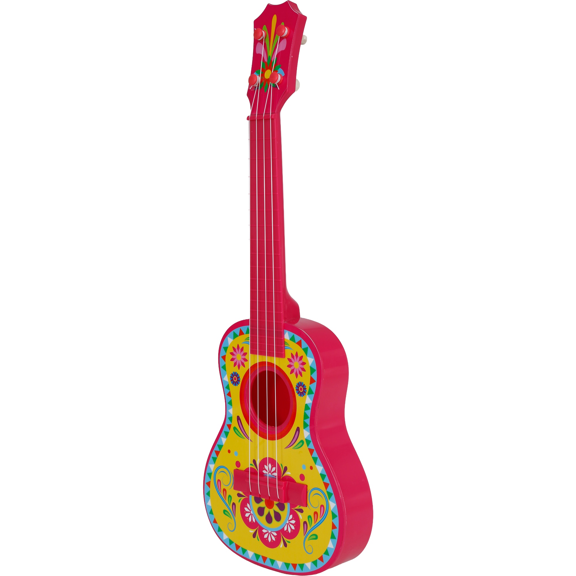 Guitarra mexicana colorida de 54 cm pensada como complemento de fantasia e acessório para festas. Fabricada em PVC leve, combina um design tradicional com detalhes florais muito vistosos. Ideal para Carnaval, photocalls, apresentações e animação, confere um toque festivo e autêntico a qualquer visual. O seu tamanho compacto torna-a confortável de manusear tanto por adultos como por crianças.