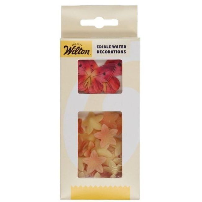Hóstias de mini flores e borboletas laranja e rosa - 30 unidades