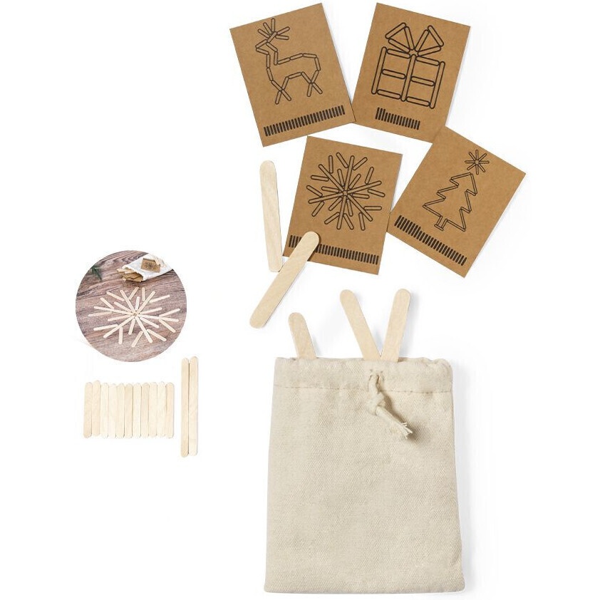 - Inclui 36 peças de madeira natural em diferentes tamanhos para construir as figuras (8 longas e 28 curtas) e 4 divertidos desenhos de estrelas com cartas visuais em papelão reciclado.