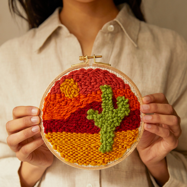 Crie este bonito bordado com a técnica da agulha de punção. Neste kit encontrará tudo o que precisa.