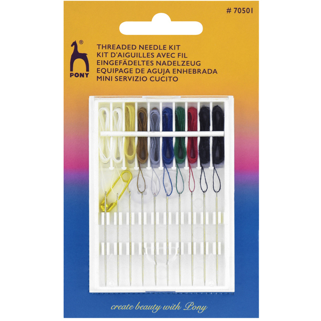 - Kit de agulhas com rosca útil para reparações de emergência, ideal para viagens.