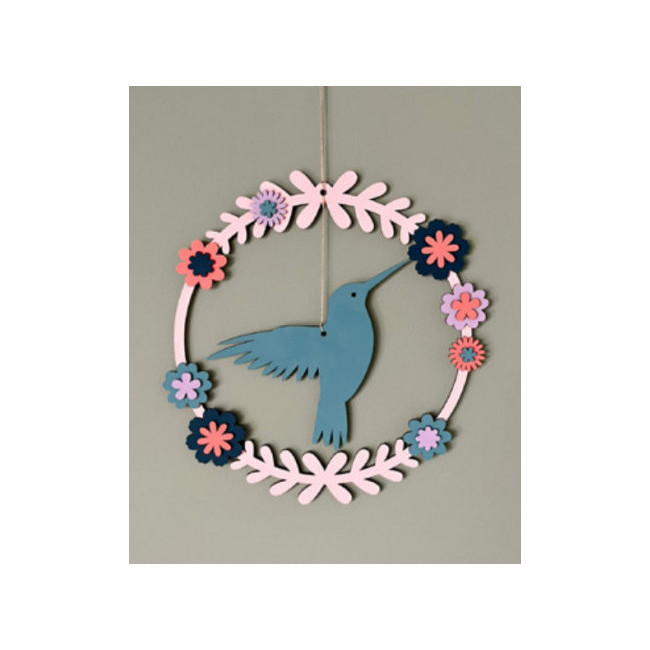 Kit coroa de flores beija-flor móvel em madeira - Artemio - 18 unid.