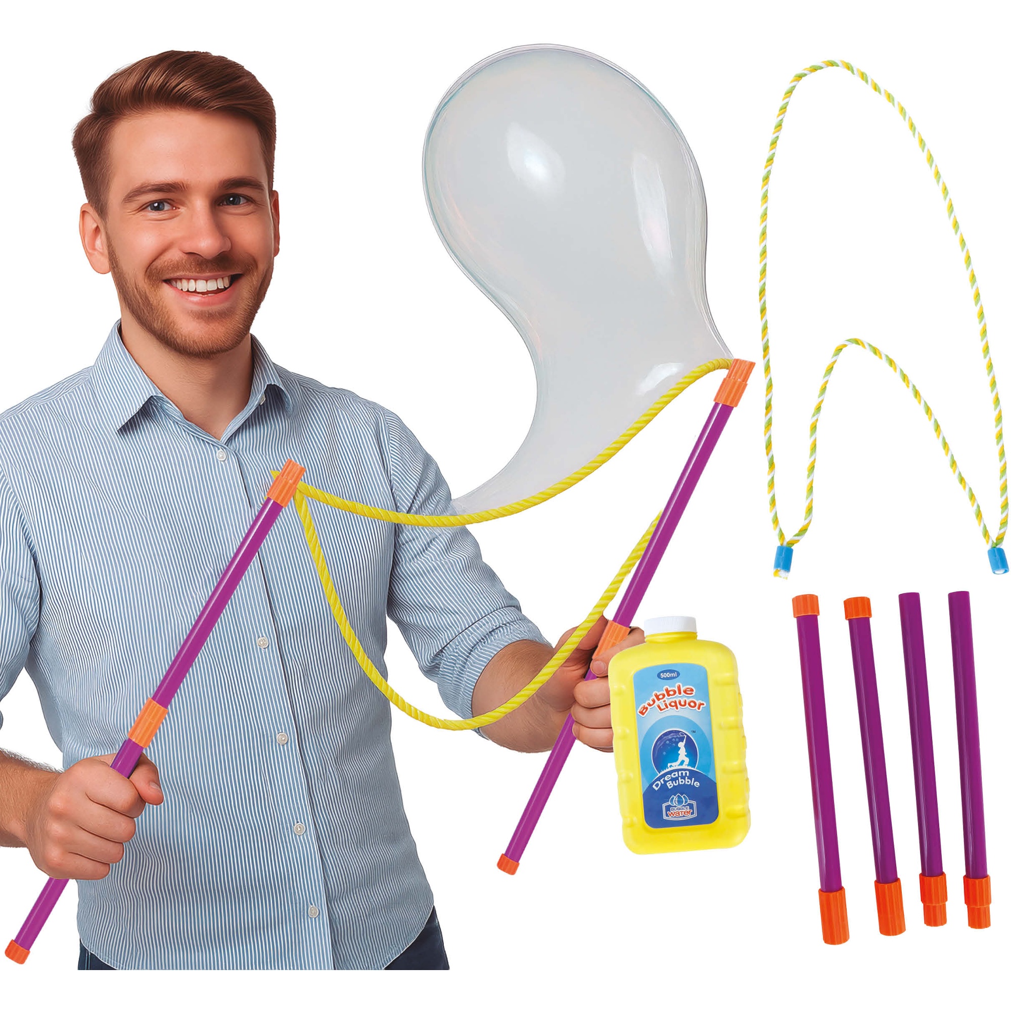 Kit de bolhas gigantes com varas e corda