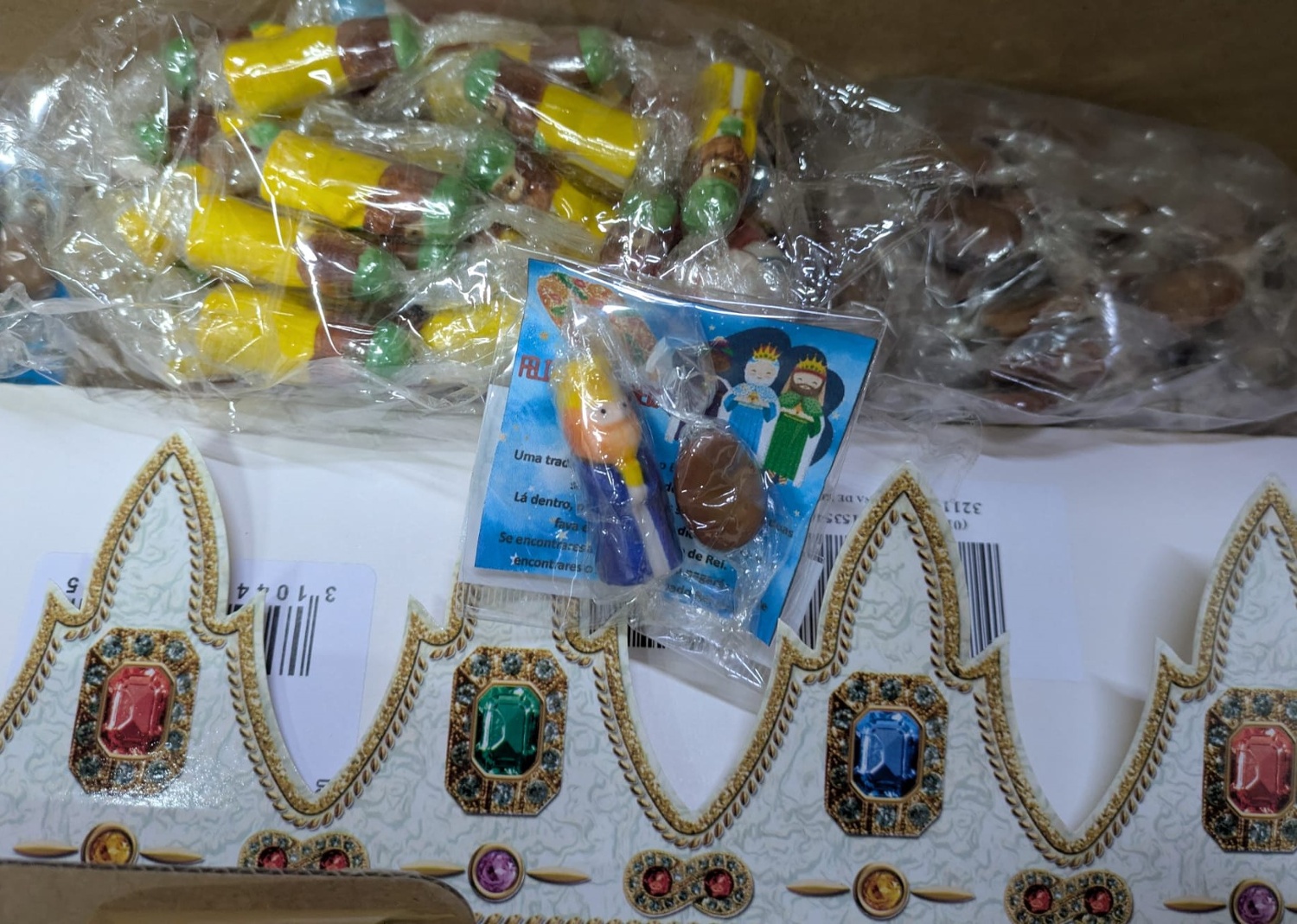 Quando o bolo estiver pronto, não se esqueça de colocar o feijão, o rei de porcelana, a coroa e o cartão com as instruções, disponíveis em espanhol e catalão. Não faltará nenhum pormenor ao seu roscón.