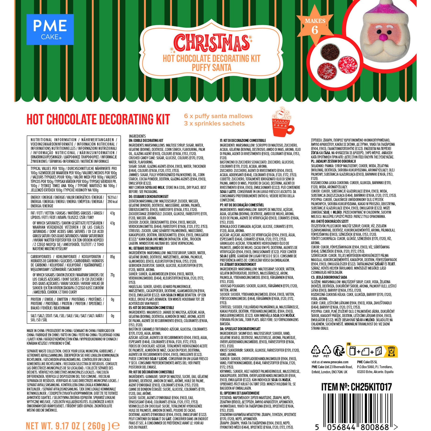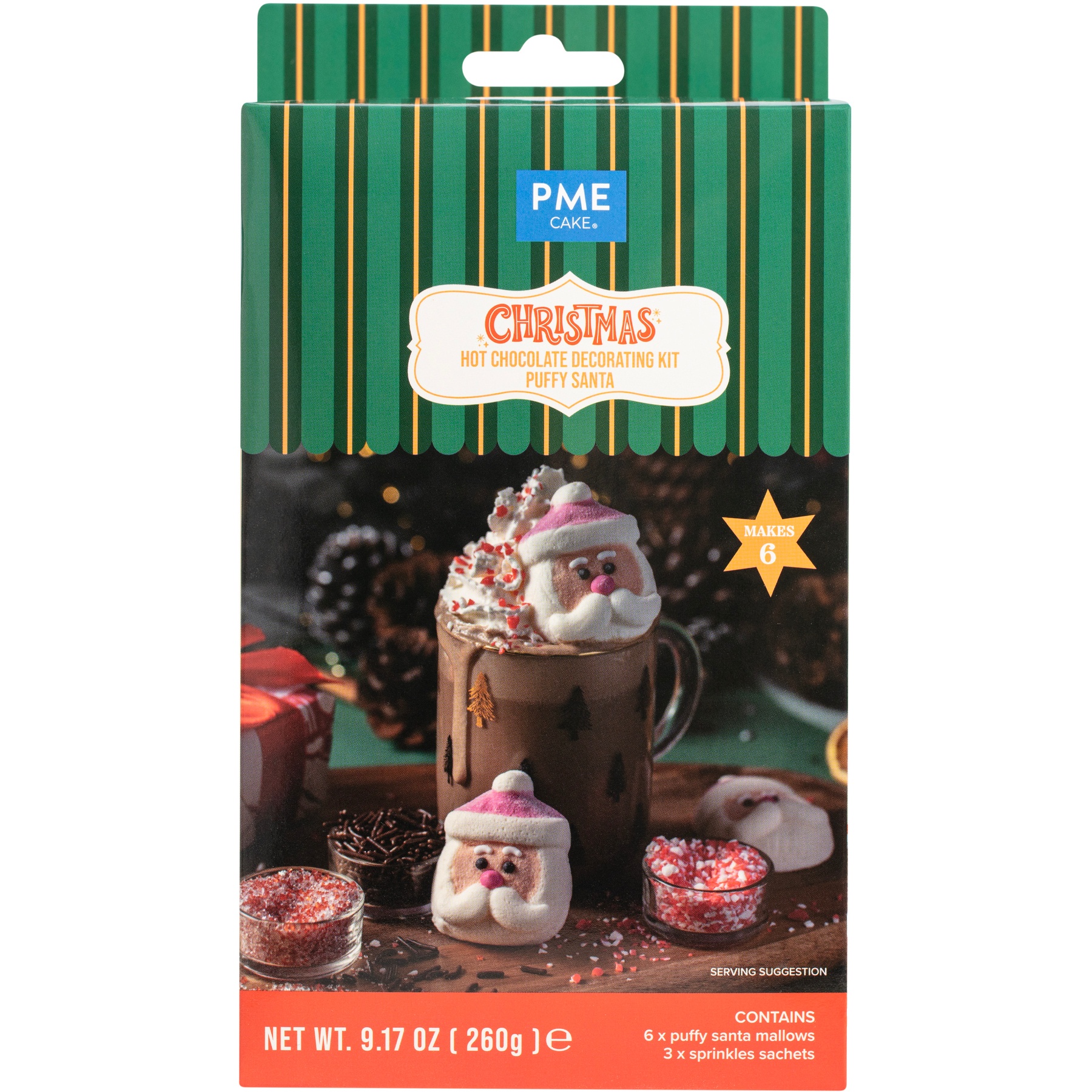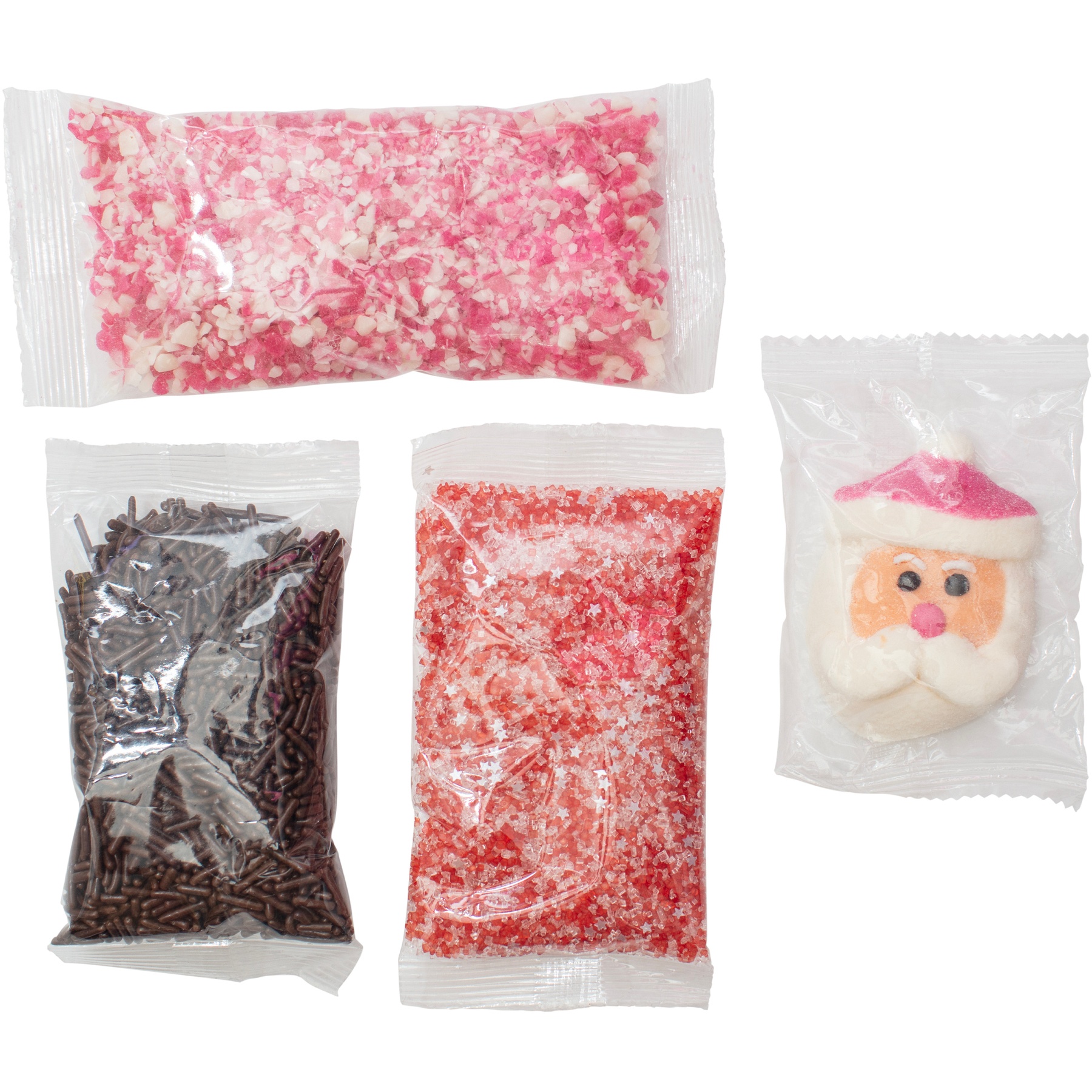- Inclui 6 nuvens de Papai Noel e 3 pacotes de confeitos (chocolates granulados, bastão de caramelo triturado e açúcar).