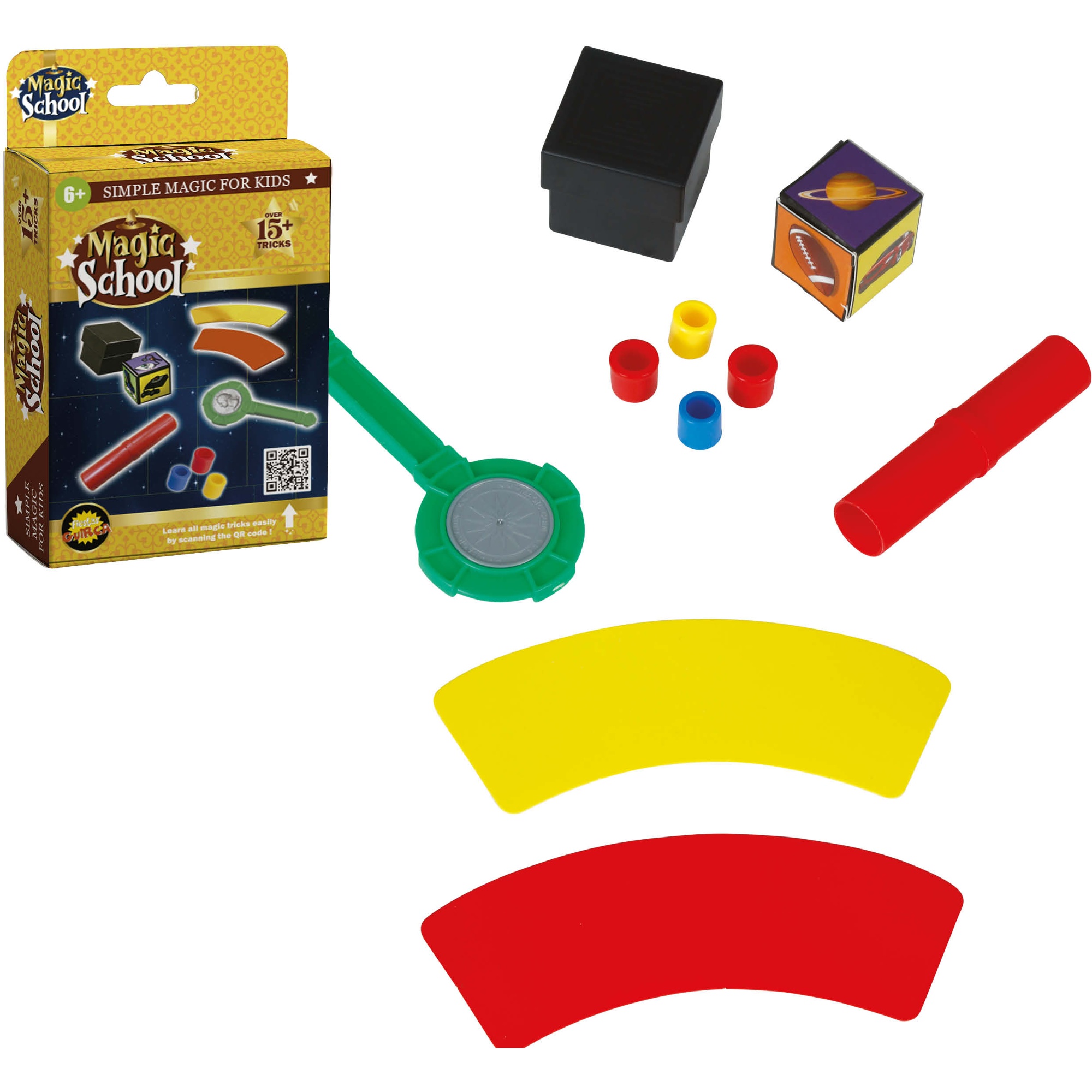 Conjunto com 12 truques de mágica pensado para crianças. Truques simples de aprender que permitem aos pequenos preparar espetáculos rápidos e divertidos em reuniões e aniversários. Peças em PVC resistentes e de fácil manuseio, ideais para mãos pequenas. Concebido para promover a criatividade, a coordenação e a confiança em cena. Apresentação atrativa em blister individual, ideal para que o(a) senhor(a) presenteie ou organize atividades em grupo.
