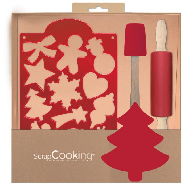 Kit de Natal com cortador múltiplo, rolo de massa e espátula - Scrapcooking - 3 pcs.
