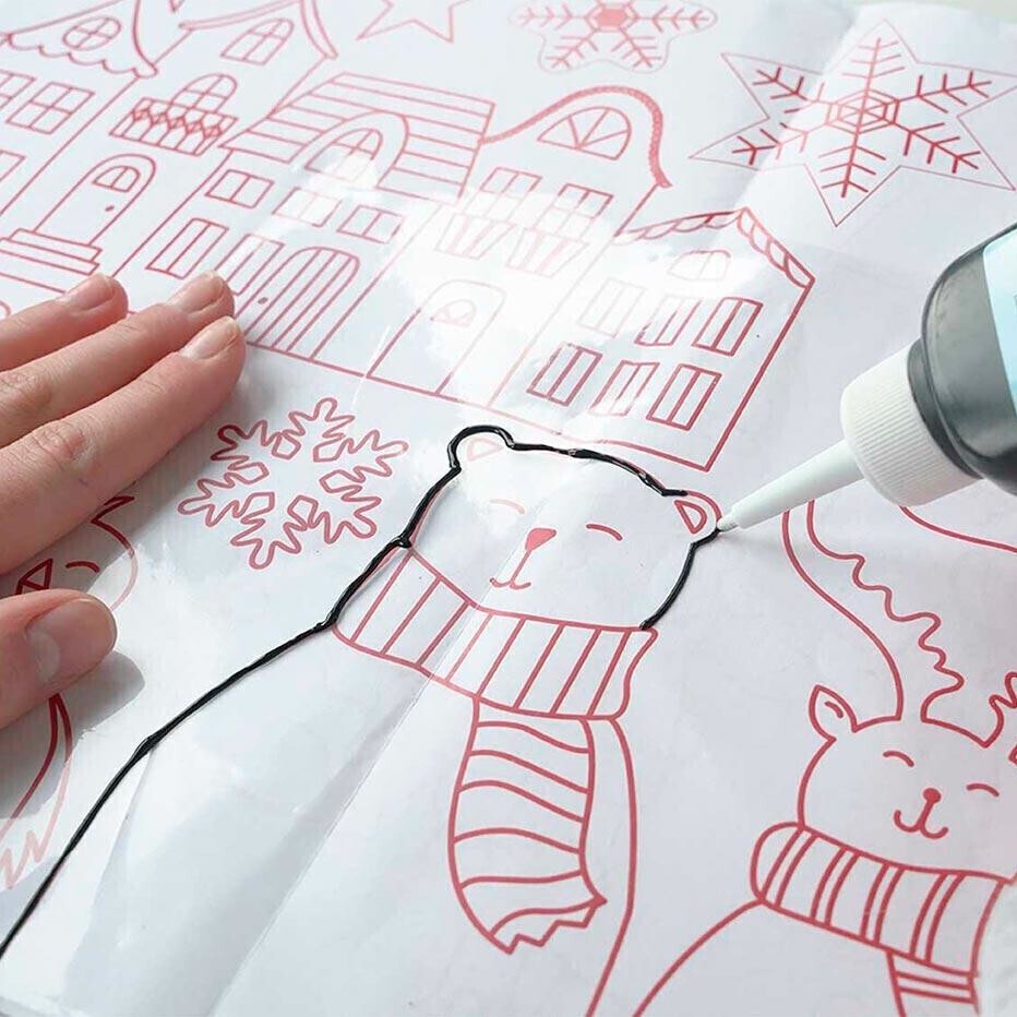 - Tintas brilhantes para janelas num frasco prático com uma ponta longa e fina.