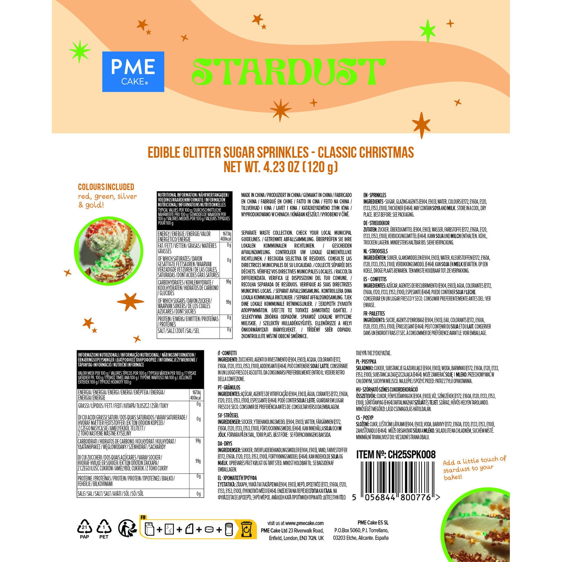 Kit de purpurina comestível com motivos natalícios de 120 gr - PME