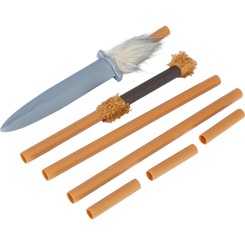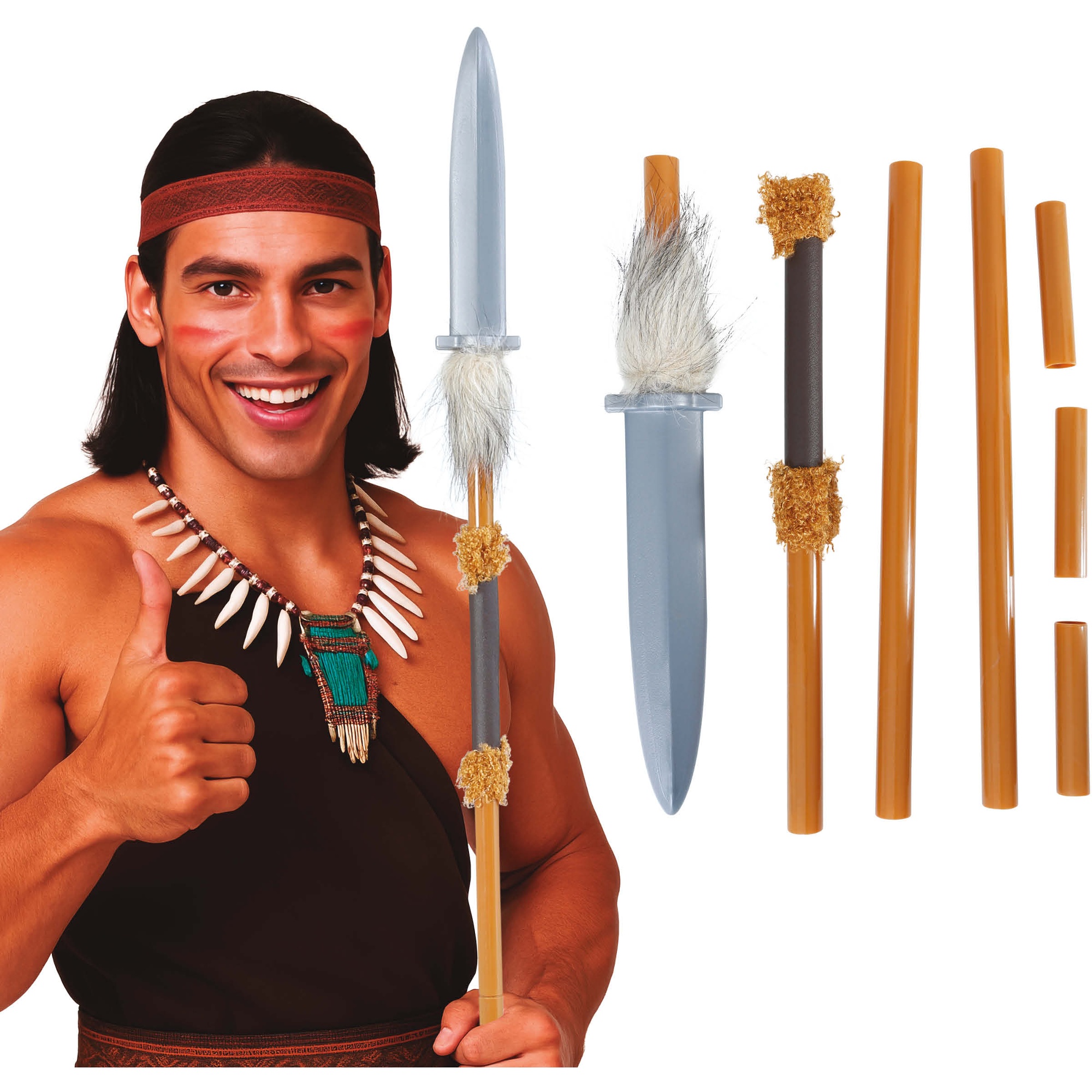 Lança desmontável em estilo indígena, concebida para complementar fantasias e ambientações. O sistema de montagem simples e o design leve tornam-na confortável de transportar e usar em desfiles, carnavais e festas temáticas. Fabricada em PVC seguro, proporciona uma aparência realista sem lâmina afiada. Ideal para acompanhar looks tradicionais ou representações teatrais.