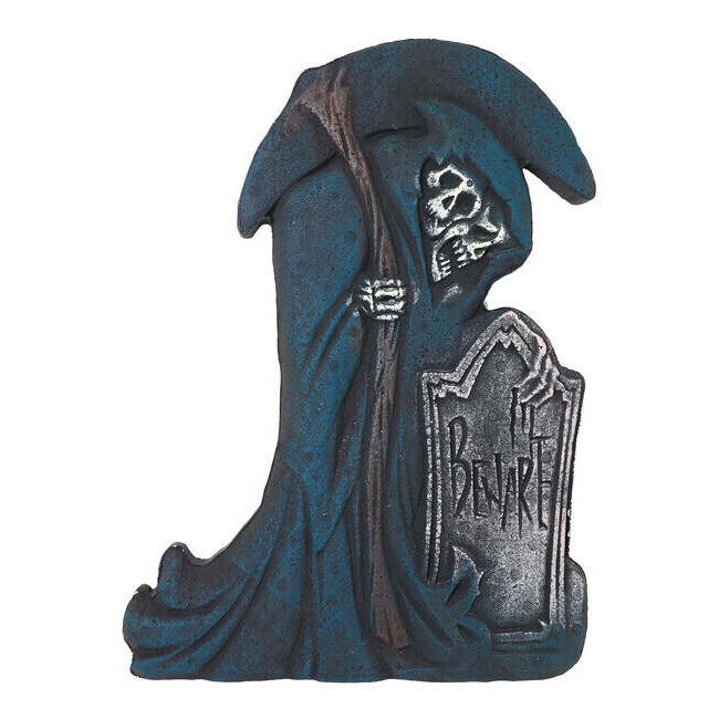 Lápide com a forma de duas caveiras de ceifeiro, 43 x 32 cm.