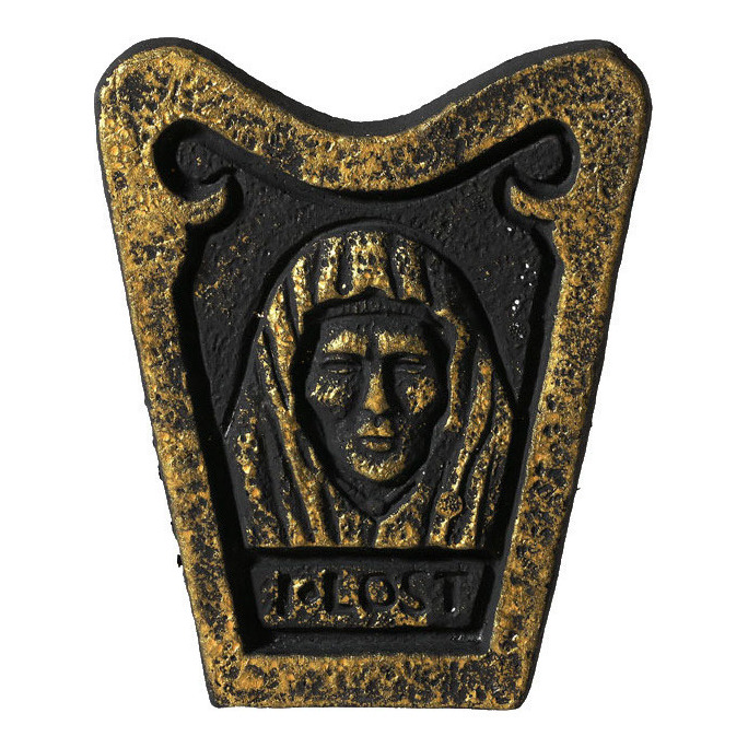 - Seu acabamento preto com detalhes dourados envelhecidos confere um toque sinistro e realista a qualquer cenografia. Ideal para jardins, entradas ou decorações interiores.
