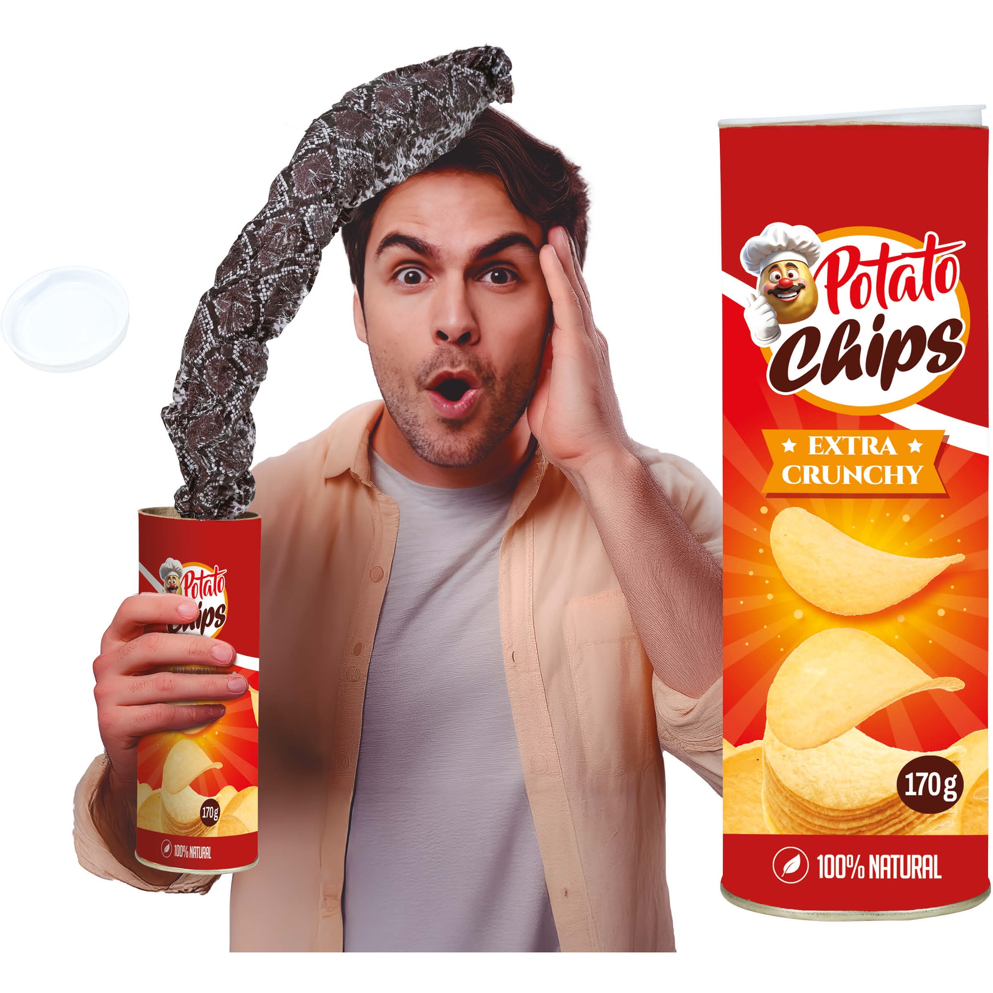 Lata de batatas divertida com serpente surpresa de 20 cm.